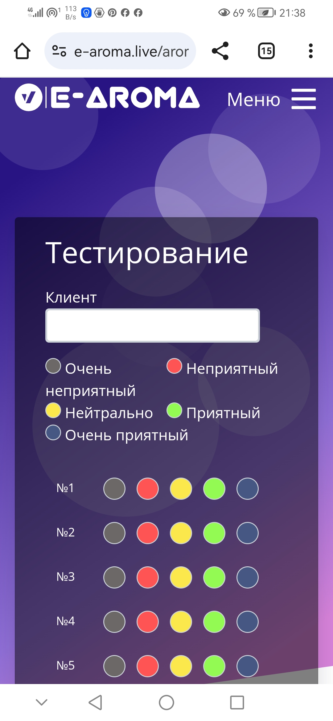 Онлайн - приложение для проведения тестирования текущего состояния здоровья с опцией реконструкциии базовых анализов крови на основе обонятельных откликов человека на запахи 100 % натуральных эфирных масел.